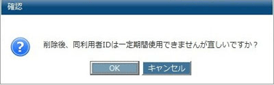削除をすると、その利用者IDは一定期間(70日)再使用できなくなります。