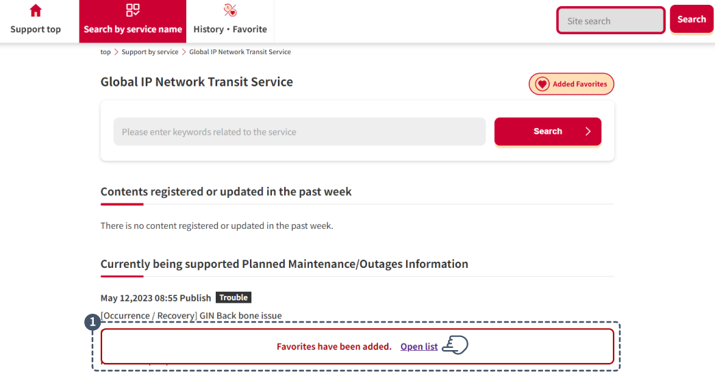 Press the "History & Favorites" button at the top of the customer support site page to move to the page.
