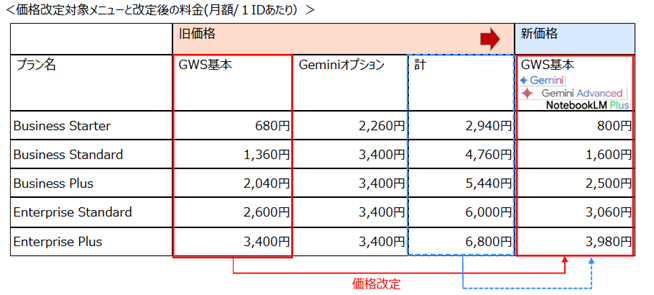 これまでGeminiを利用するにはオプションの追加費用が必要でしたが、今後は基本料金のみでご利用いただけるようになります。