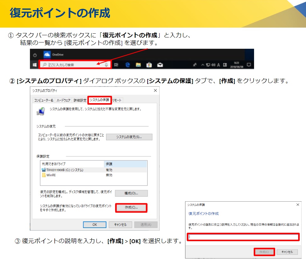 Windowsアップデート実施前に 「復元ポイントの作成」 を実施頂きます様、お願い致します。